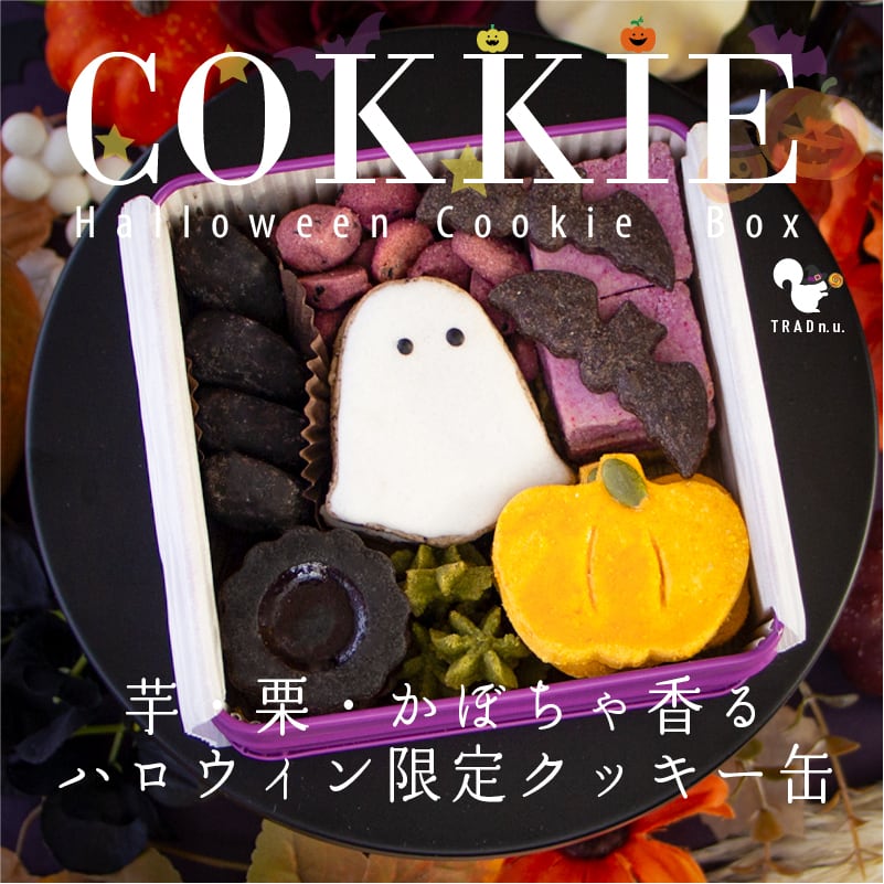 ハロウィンクッキー缶|芋・栗・かぼちゃ ココア×紫芋×ラムプラムなど9種 ギフト・手土産・パーティーに