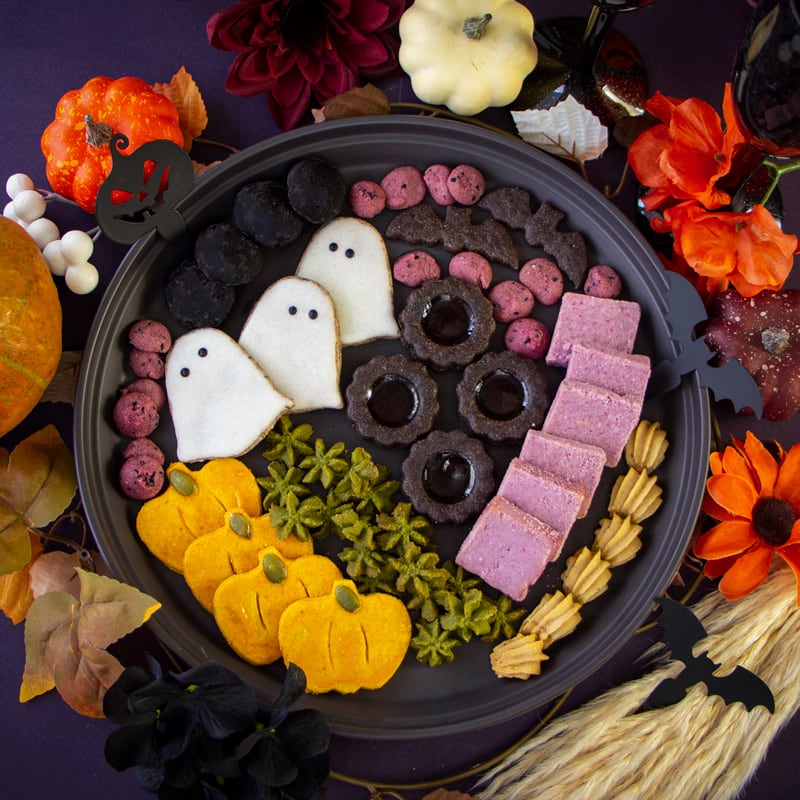 むらさきの缶に、賑やかで濃香なハロウィンならではの組み合わせのクッキーたちを詰め込みました。