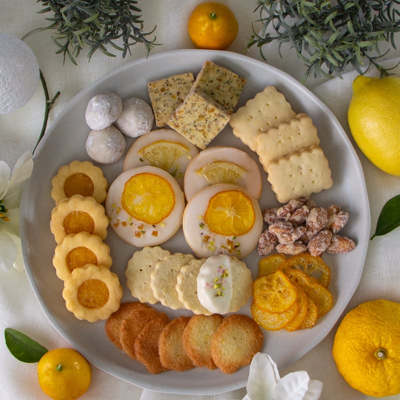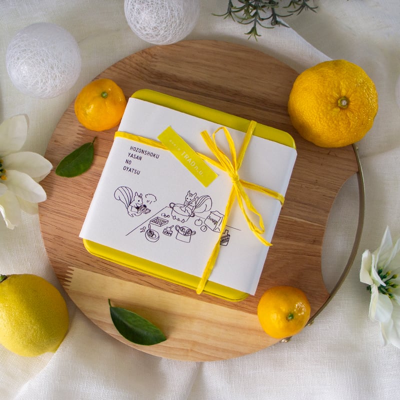 ぱっと明るい黄色の缶に、黄色い柑橘をたっぷり使ったお菓子をぎゅっと詰め込みました。
